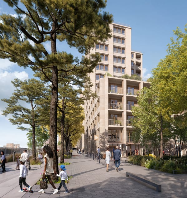 L’équilibre des fonctions habitat/emploi/consommation et leur organisation forment la promesse d’une ville harmonieuse et créative. L’aménagement urbain et la programmation portent en eux cette ambition. Les logements, proches de la place Hébert, côtoient les zones d’activité situées à la pointe du quartier, tout en étant intimement liés par des trames vertes, faisant ainsi se rencontrer les populations qui vivent, travaillent ou consomment.